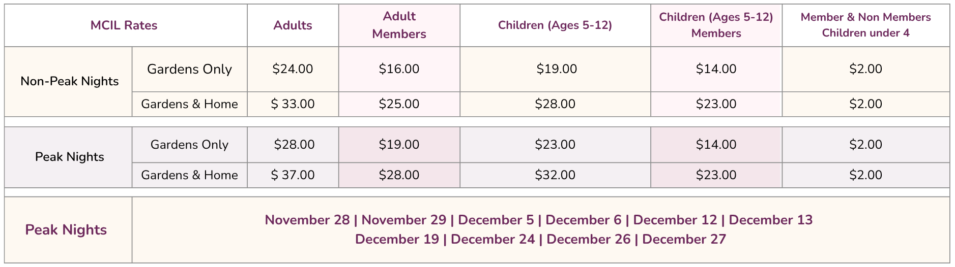 After 12:00 PM, members must purchase Magic Christmas in Lights tickets at the member discount rate.