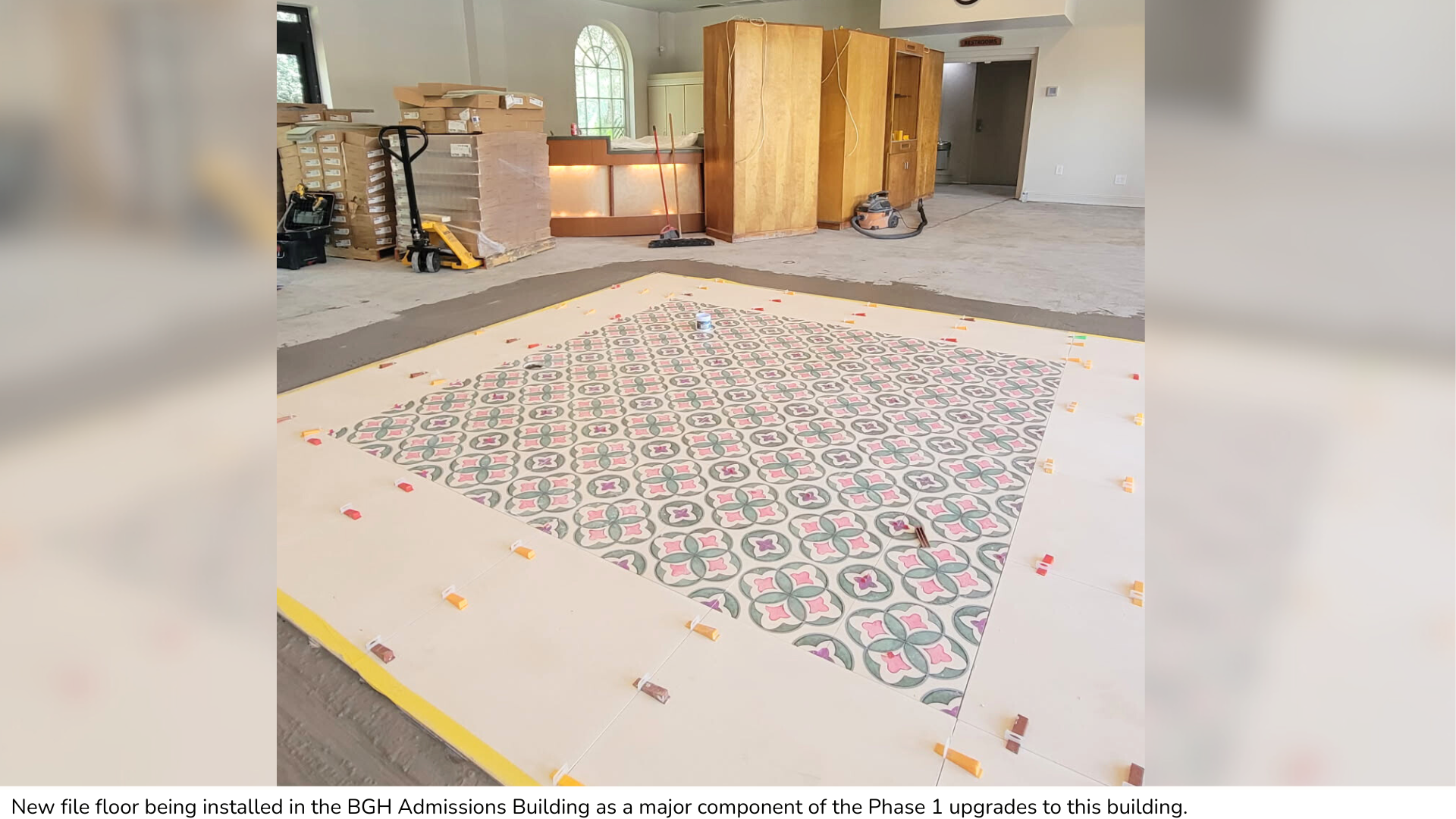 3. The Admissions Building is enjoying exciting changes to its interiors via the completion of Phase 1 upgrades: new flooring (carpet and tile treatments) and an always helpful fresh coat of paint. (We even have haint blue ceilings, now, ya’ll!) The bathroom corridor for this building also has new carpet and will soon have beautiful new wallpaper, which we can’t wait for you to see. As this building is the literal “front door” of BGH, we have long wanted to update the décor, which was showing its age. Thanks to our recent successes in bringing in more visitors to BGH, we are happy to be able to present to you these newly refreshed building interiors that are furnished by the very dollars we collect at Admissions.