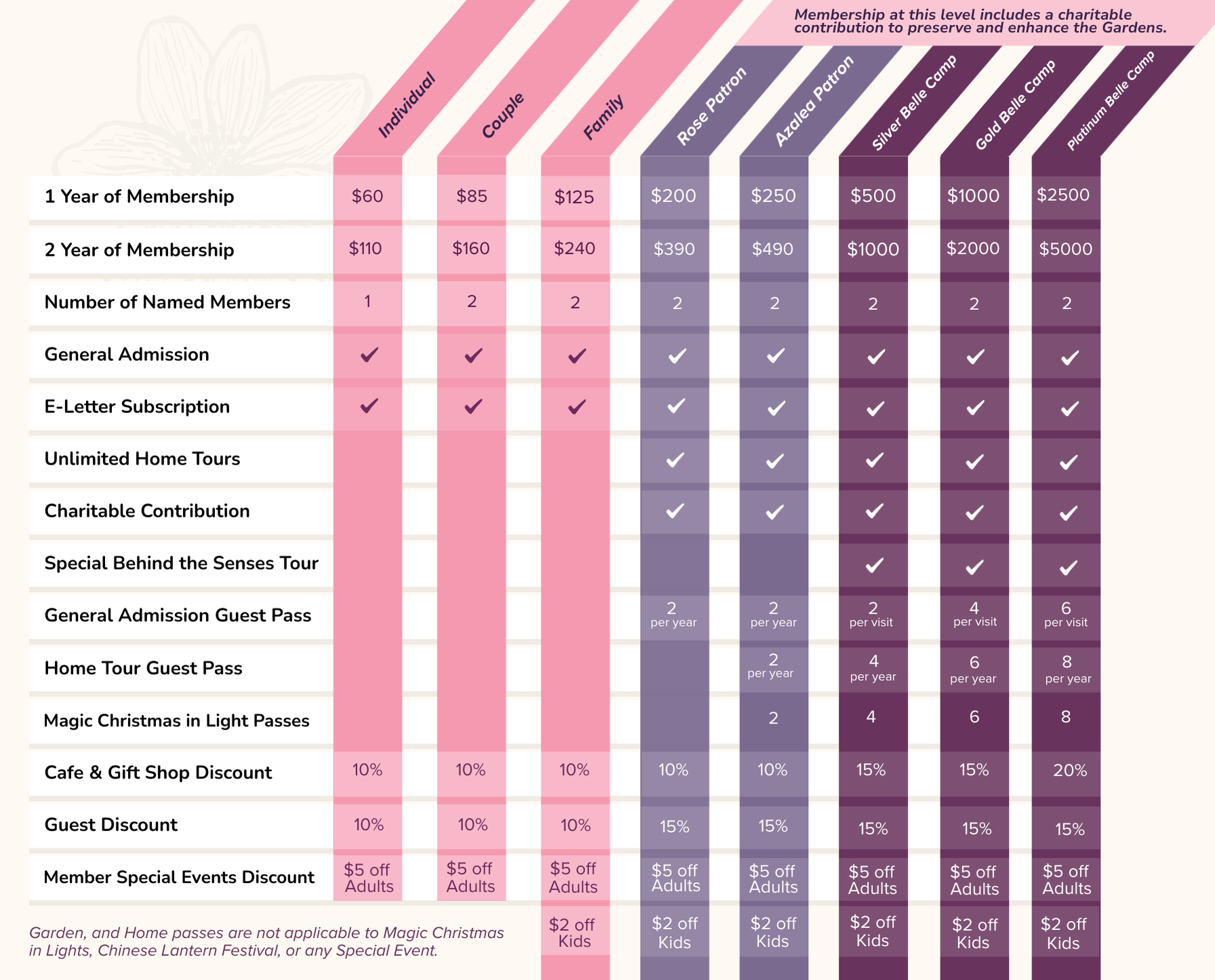 Your Friends of Bellingrath membership entitles you to free admission to the Gardens year-round (except during special events). Members receive special mailings and e-newsletters to keep you up-to-date on everything that is growing and happening throughout the year. A basic Family Membership includes two adults and children under age 18, living in the household. Patron and Belle Camp members also receive unlimited admissions to the Bellingrath Home for one year and invitations to special events.